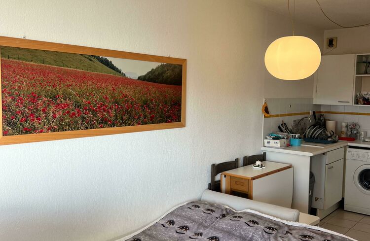 With a surface area of 33 m², it consists of an entrance, a large and bright living room with open kitchen, a bathroom, and a 9 m² terrace. A parking space can be rented in addition for 150€ per month.