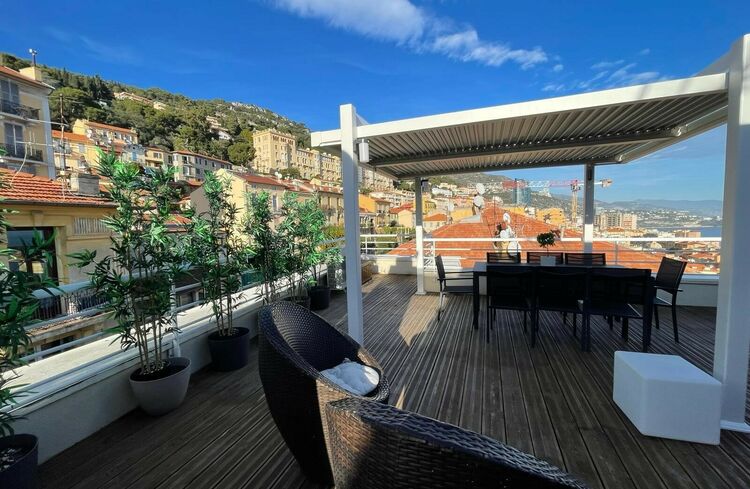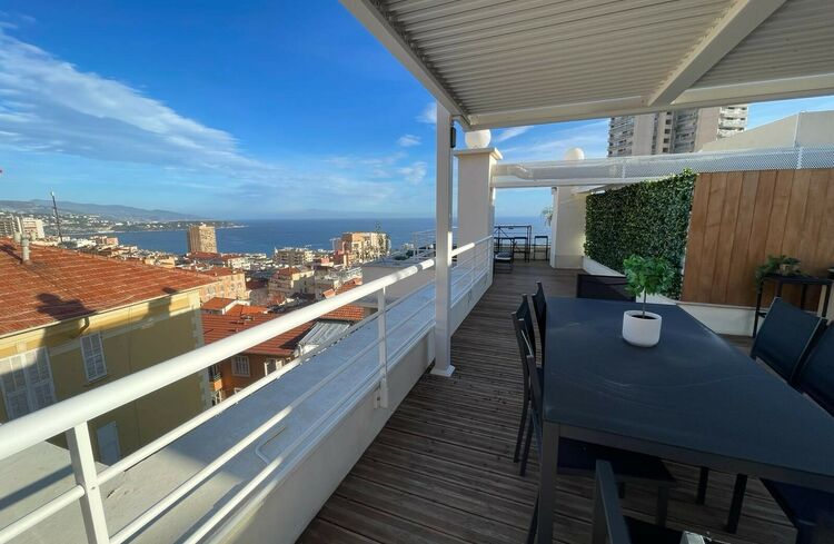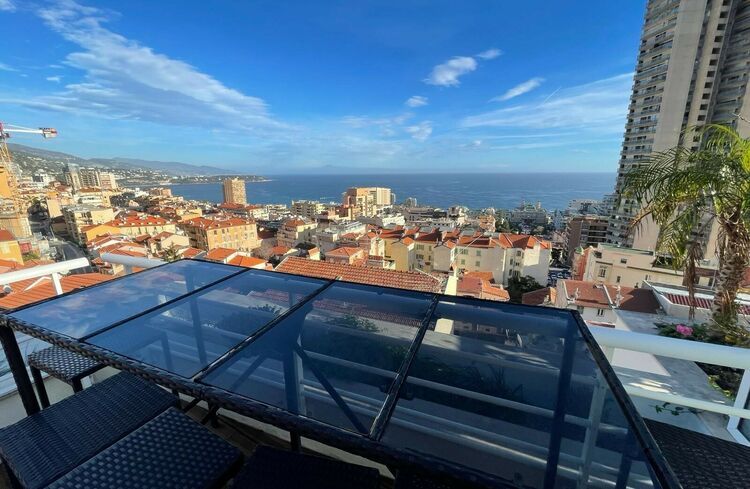 Cet appartement en excellent état a été récemment rénové, il est idéalement situé sur les hauteurs de Beausoleil à 3 minutes de la Principauté et bénéficie d'une très belle vue sur la mer, Monaco et les collines environnantes. Il comprend une entrée, un beau salon/salle à manger, un espace bureau, une cuisine entièrement équipée, deux chambres et deux salles de douche ainsi qu'une buanderie et de nombreux rangements, un escalier mène à la terrasse sur le toit qui est entièrement aménagée et se compose d'une cuisine d'été, un lounge et un espace dinatoire pour profiter des belles soirées d'été.